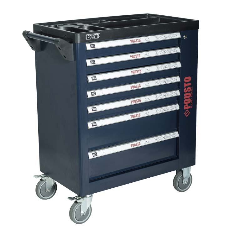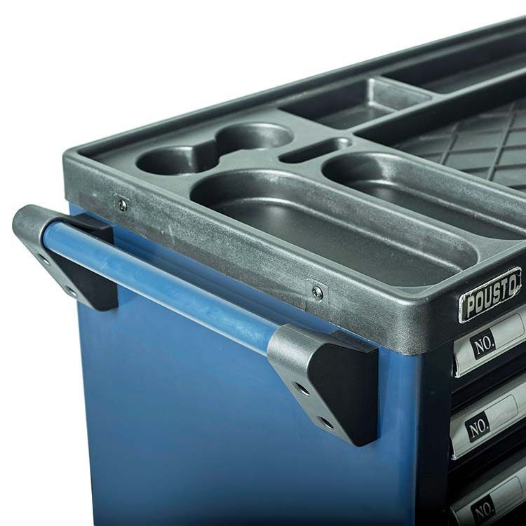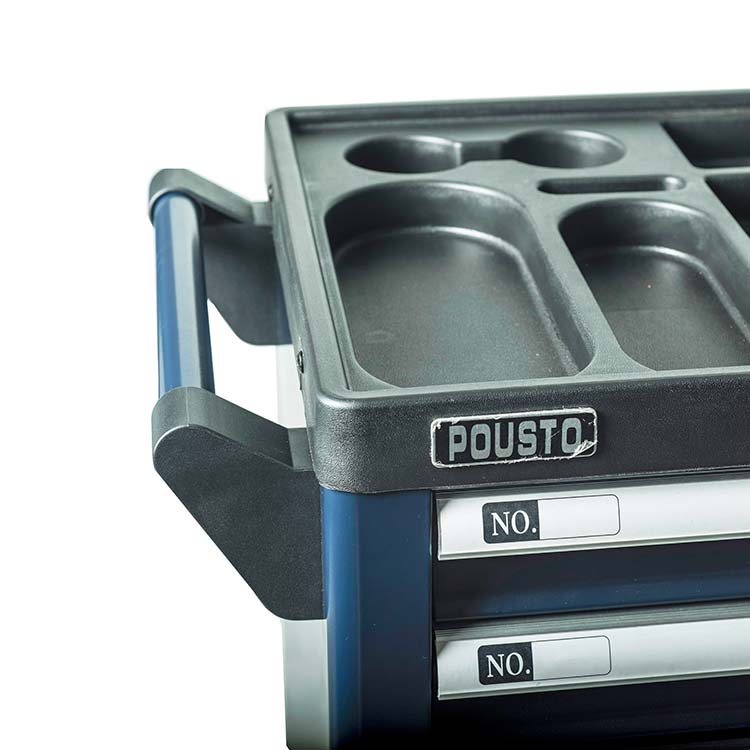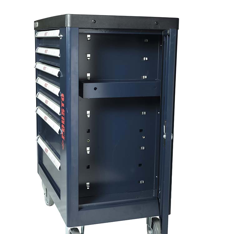 1.抽屜采用滾珠導軌,抽屜承重力為50kg/層,六層抽屜不同高度能儲存不同種類的工具,中央側(cè)鎖設計,開啟方便,每個抽屜都配有防傾倒保護鎖。